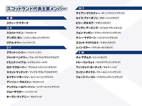 【画像】スコットランドほか FIFAワールドカップ2026出場国 フォーメーション&メンバー