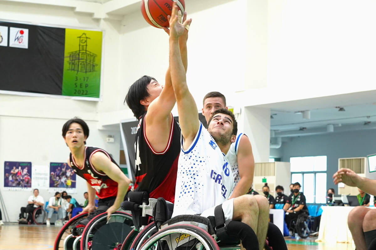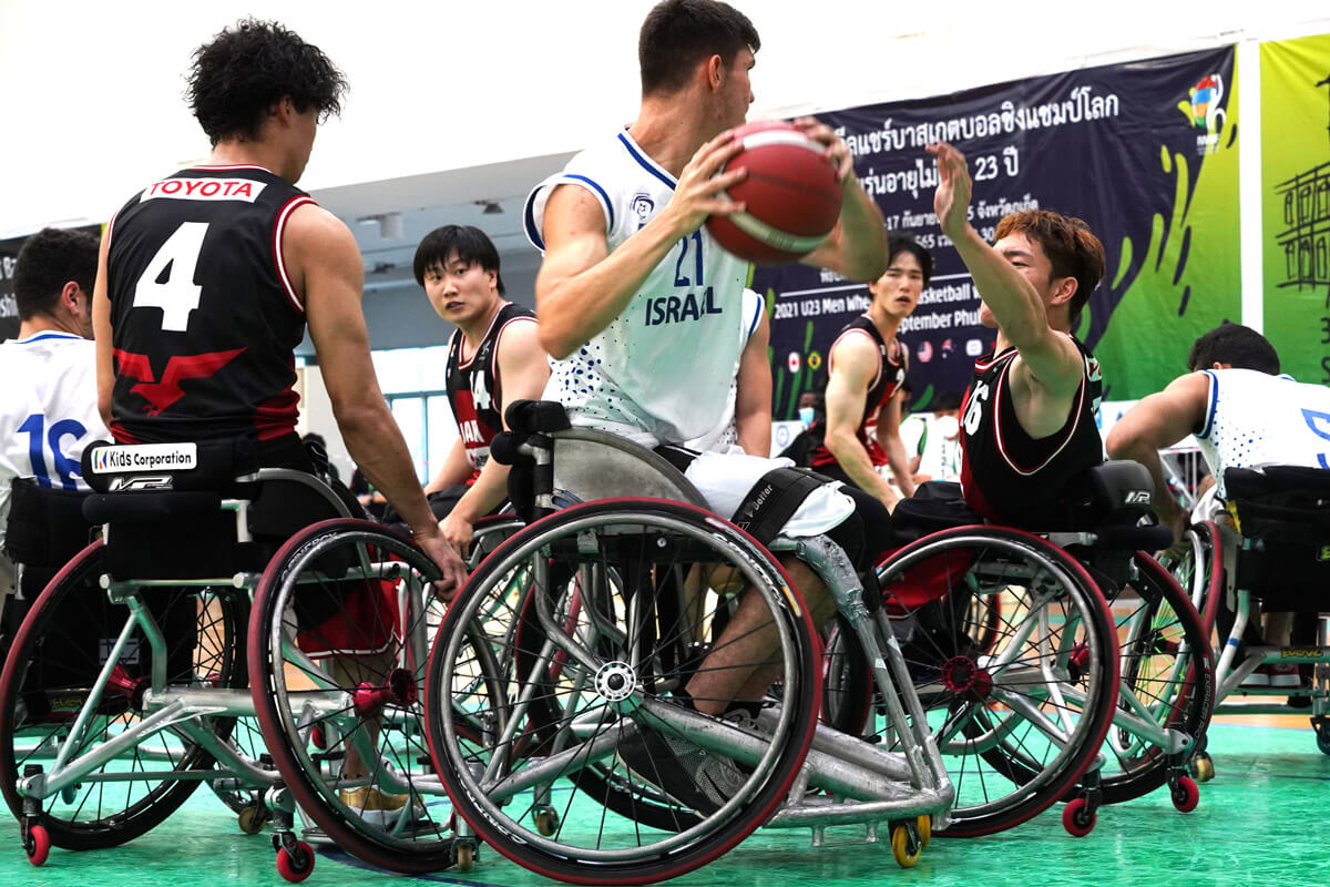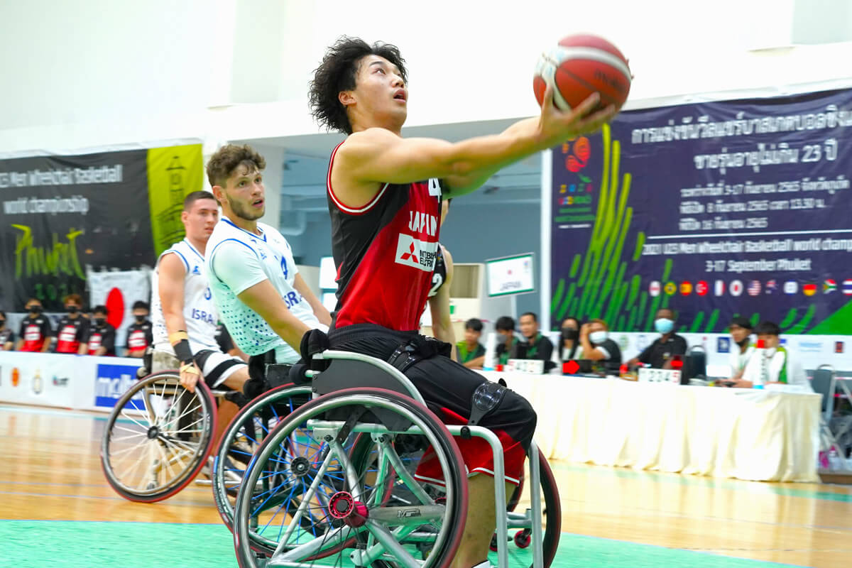 9月14日、タイ・プーケットで開催されている車いすバスケットボール男子U23世界選手権の準々決勝。グループA3位の日本は、グループB2位のイスラエルと対戦し64-43で快勝、ベスト4進出を決めた。スタートから試合の主導権を握り、攻防にわたって相手を圧倒した。
