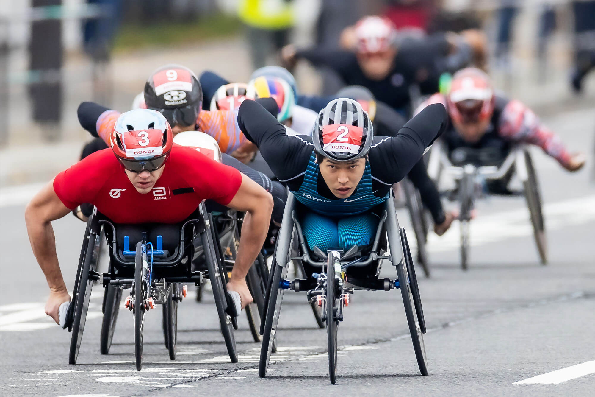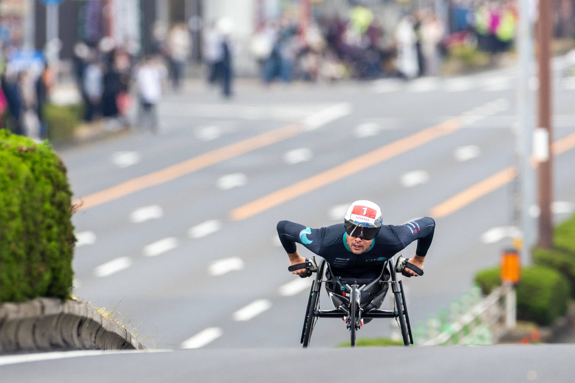 朝10時。人が埋め尽くされた沿道が静まり返った中、号砲とともに男子フルマラソンが大分県庁前をスタートした。直後に勢いよく飛び出したのが、鈴木だった。その彼についていったのがフグと、東京パラリンピック銅メダリストのダニエル・ロマンチュク(アメリカ)。これは、鈴木の思惑通りの展開だった。