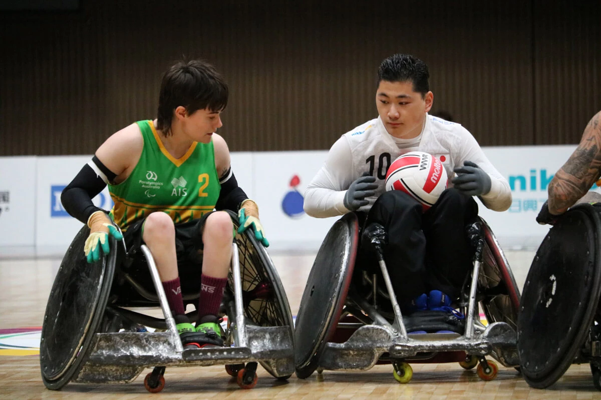 先輩たちに引っ張られるように、ルーキーたちが躍動する。チーム最年少、高校2年生の青木颯志は、国際試合デビューとは思えない落ち着きぶりで、荒けずりながらも堂々としたプレーを見せた。車いすラグビーに転向してわずか1年、「世界に通用するような、なんでもできるプレーヤーになってパラリンピックに出る」という高い目標を掲げ、日々の練習に励んでいる。