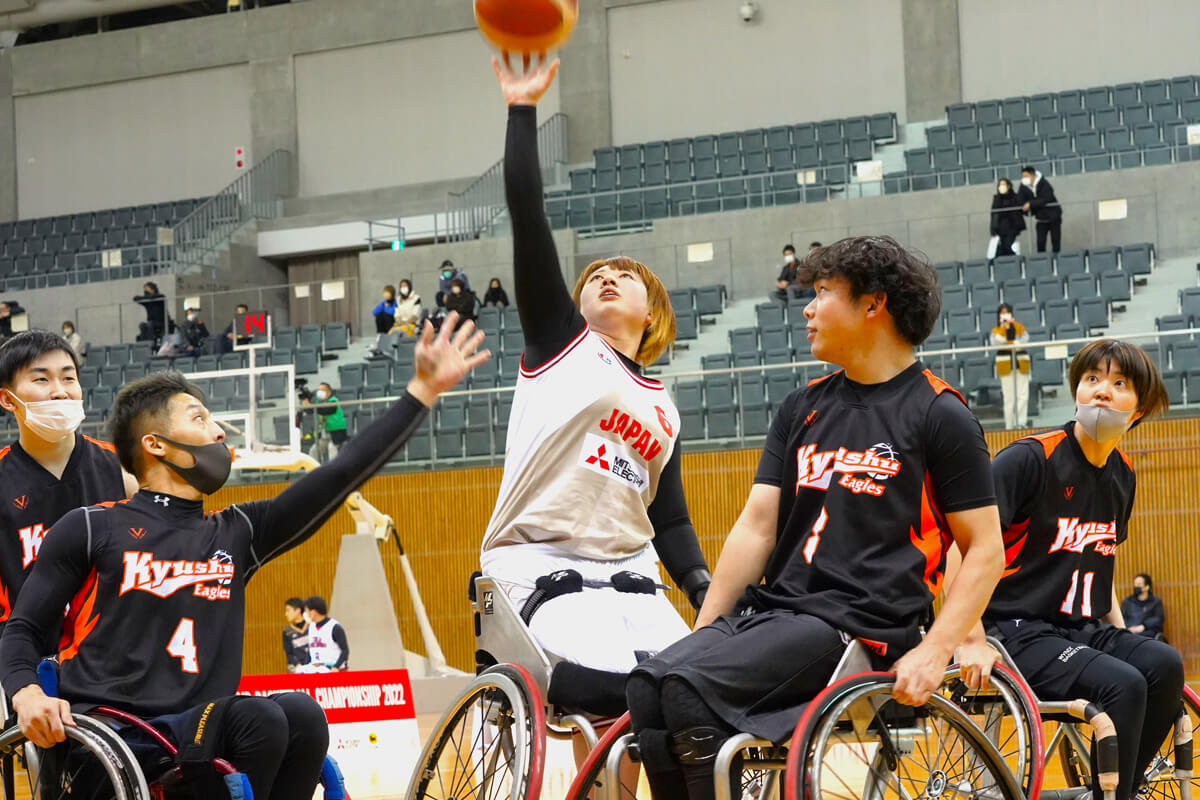 もともと小学3年生からバスケットボール選手で、中学、高校ではセンタープレーヤーとして活躍した江口は、車いすバスケに転向した当初から将来を嘱望された存在だった。19年にタイで開催された前回の女子U25世界選手権にチーム最年少、19歳で出場し、スタメンに抜擢されるなどして活躍。その後も高さを生かしたプレーに磨きをかけて著しく成長し、昨年のアジアオセアニアチャンピオンシップスで、ついにA代表デビューを果たした。