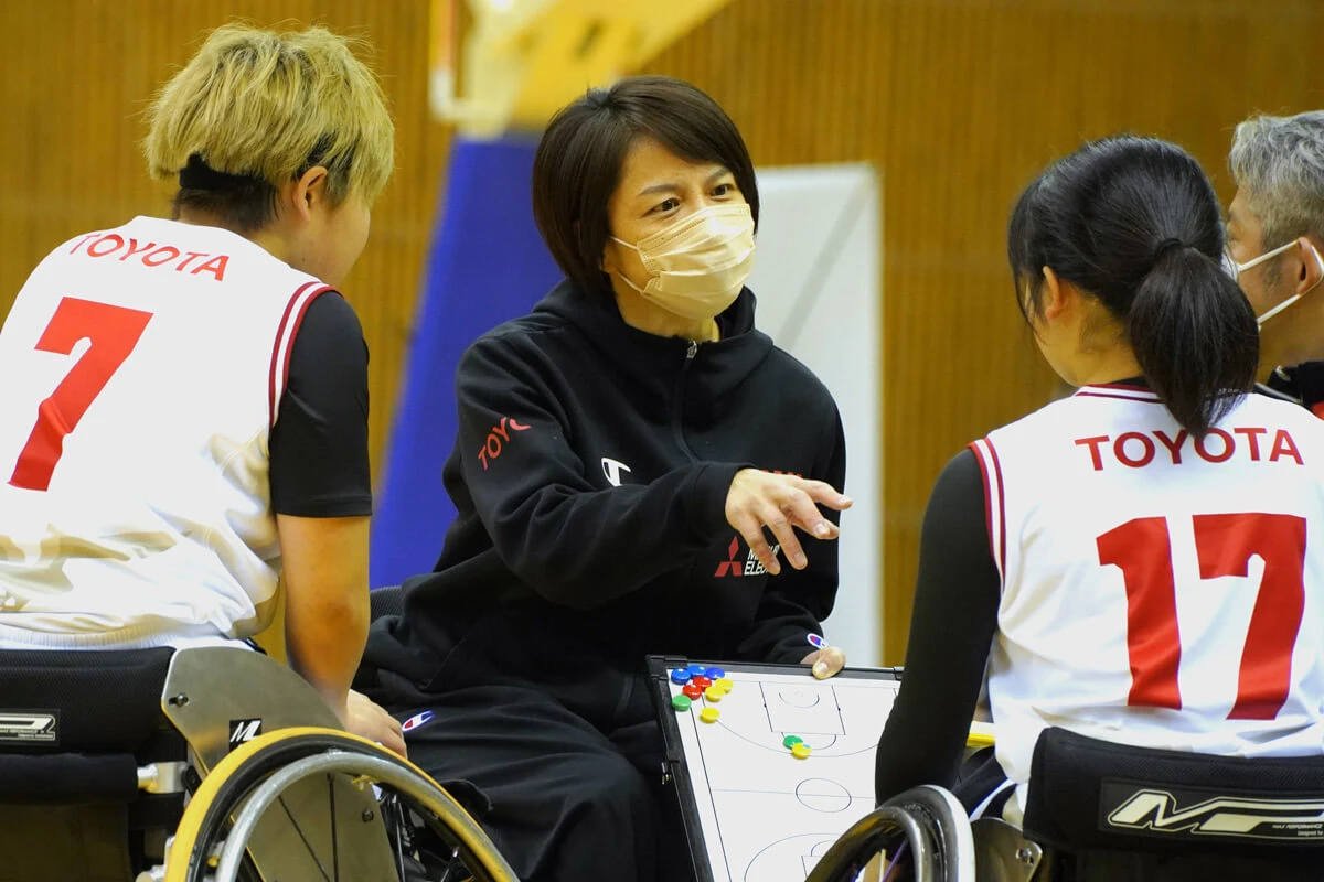 「U25日本代表とはいえ、男子と違って人数も少なく、車いすバスケをやり始めたばかりの選手も少なくありません。そんななか現在は基礎の基礎をやっている段階。まずは土台をしっかりと作ったうえで、技術を教えたいと思っているので、フィジカル強化をするための体づくりをしています。私自身の経験からして、世界の強豪と戦う時に大事になるのは、個が強いうえでのチームプレーだと思うんです。土台となる個が弱ければ、チームとしてもろさが出てくる。だからこそまずは個の強さという土台づくりをするためにも、1対1にこだわりたいなと。そういう意味で、ディフェンスはプレスでいきました」