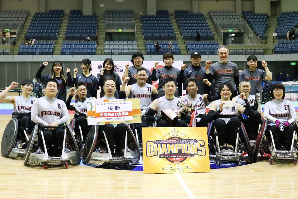 日本選手権でフリーダムは、まさに渡邉の言葉通りの戦いぶりで優勝をつかみとった。“全員ラグビー”で予選を勝ち上がり、今大会最年長・60歳の和田将英から、昨年度に車いすラグビーを始めた森澤知央まで、全選手が決勝のコートでプレーした。