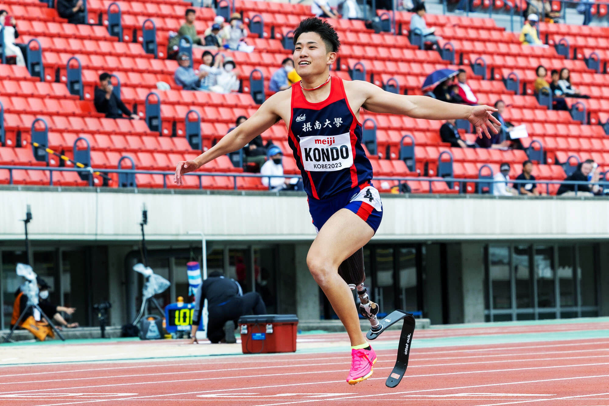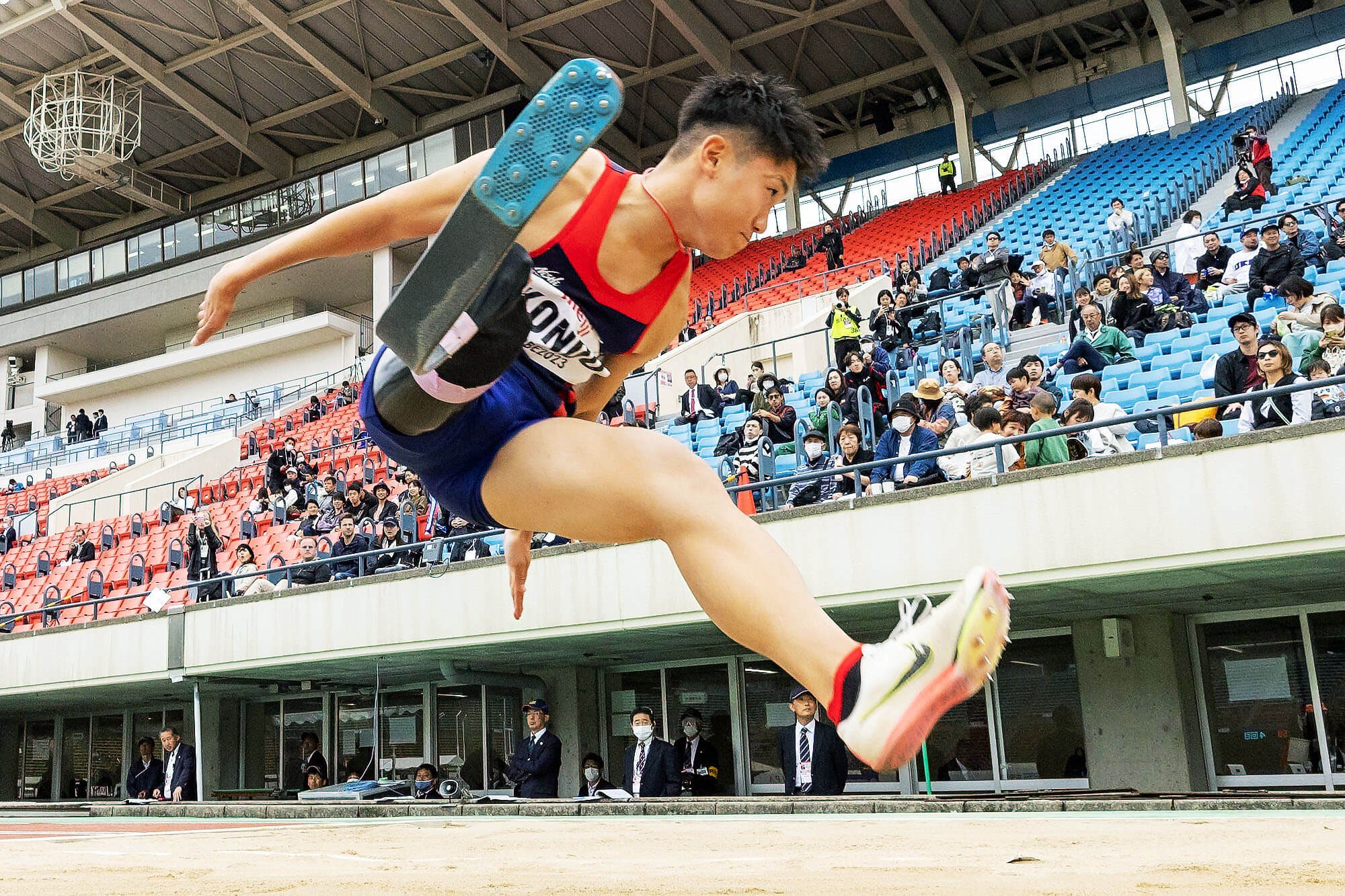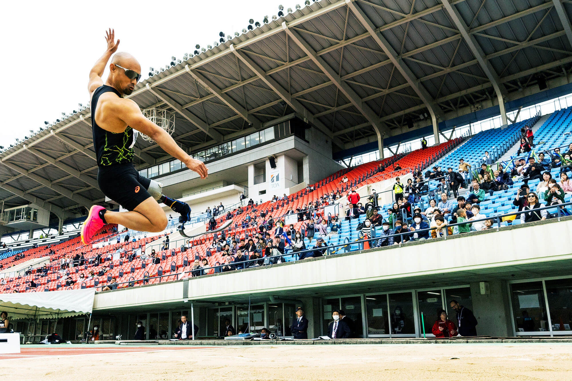 今大会で注目された一つが、世界の舞台で活躍してきたベテランと、成長著しい新星とが火花を散らした、男子T63(片大腿義足など)のクラスだ。ベテランとは、2008年北京から4大会連続でパラリンピックに出場し、走り幅跳びでは北京、16年リオの2大会で銀メダルを獲得するなど、義足ロングジャンパーの第一人者である山本篤、41歳。一方、大学4年生の近藤元はもともと陸上競技部に所属していたが、20年に交通事故に遭い右足を切断。東京パラリンピックでパラ陸上の世界に魅了され、昨年パラアスリートとしてデビューしたばかりだ。