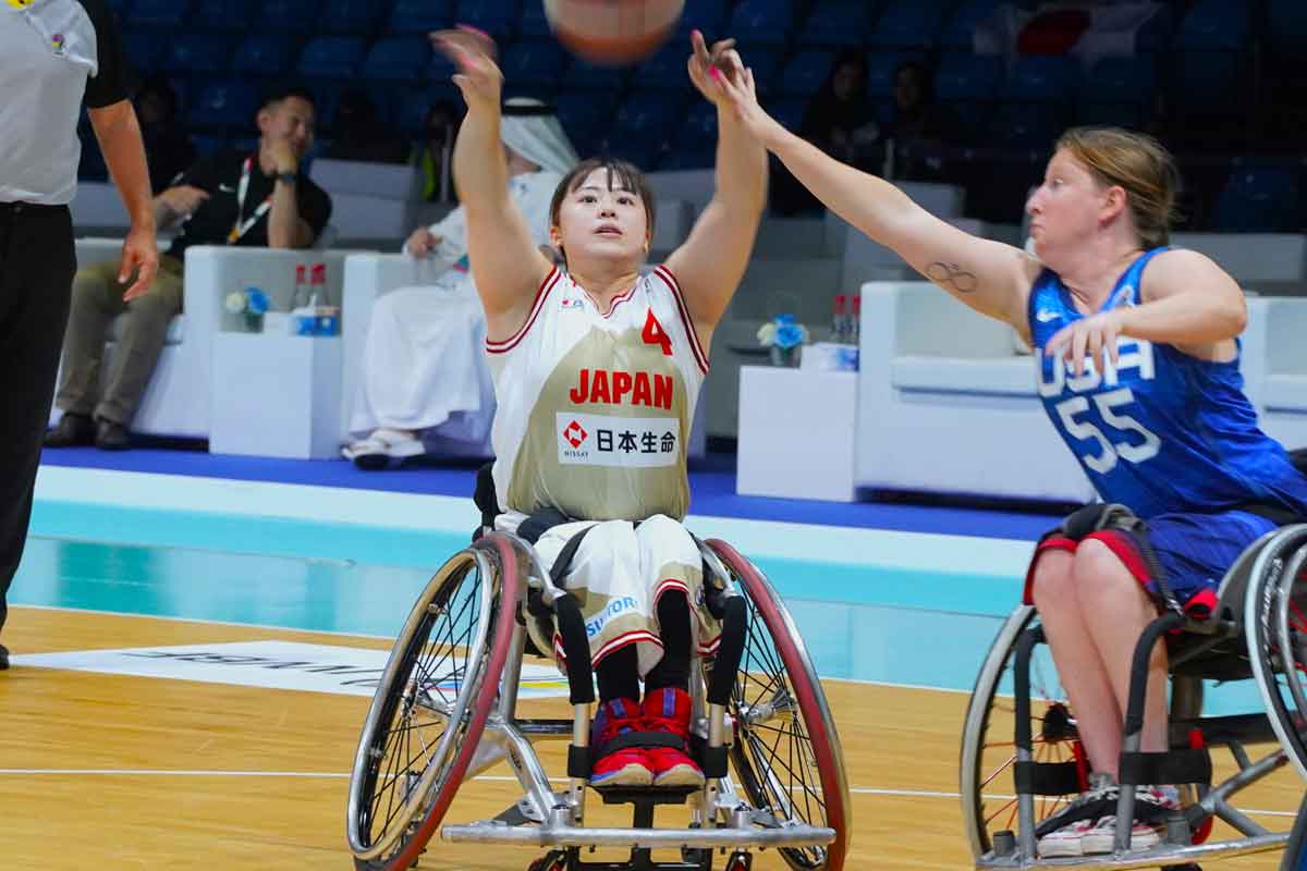6月9~20日にUAE・ドバイで開催された車いすバスケットボール世界選手権。2大会ぶりの出場となった女子日本代表の戦いをふり返る。まずグループリーグでは、開会式の翌日10日にアルジェリアとの初戦を70-36で快勝し白星スタート。そして12日、第2戦では今大会最初の大一番、東京2020パラリンピック銅メダルのアメリカと対戦した。岩野博ヘッドコーチ(HC)が「日本の現在地を知る意味で大事な一戦」と語っていた日米戦をレポートする。
