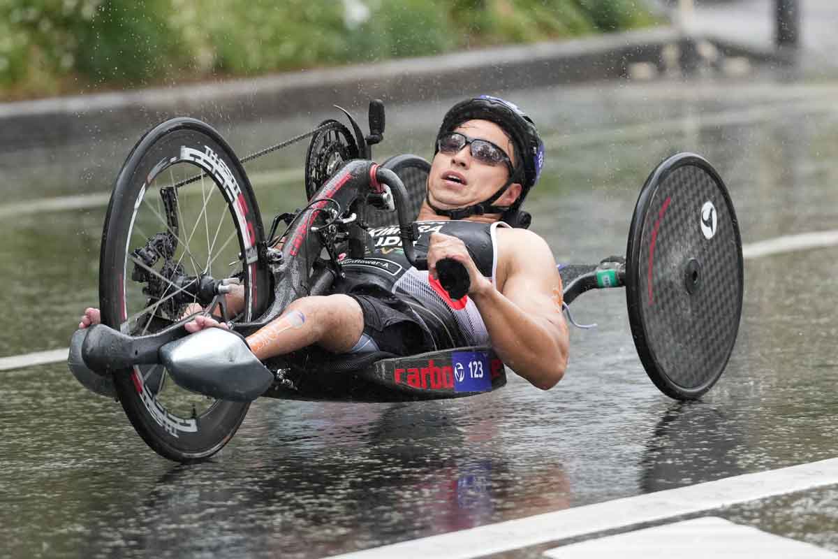 男子PTS4(運動機能障害)で東京パラ銀メダルの宇田秀生(JPNNTT東日本・NTT西日本)は強化してきたスイムは6位で上がり、バイクは全体2位、ランは同3位のタイムで順位を上げ、4位でフィニッシュした。表彰台まではあと13秒だった。