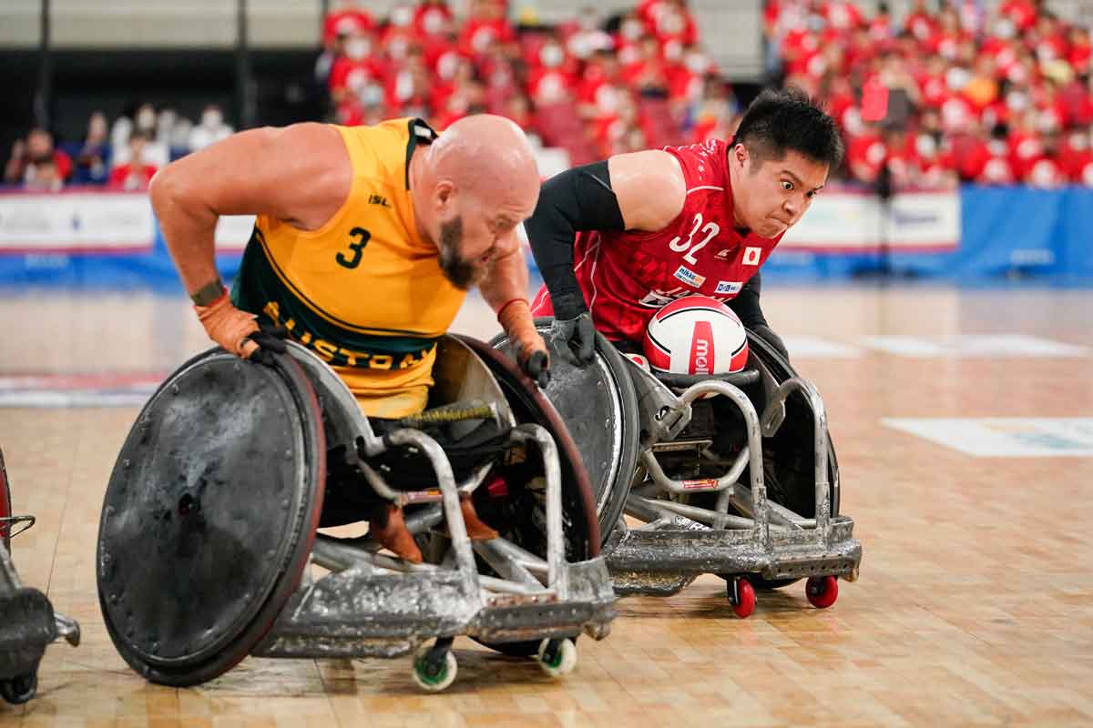 今大会、日本にとって最大のライバルとなるオーストラリアは、世界最強プレーヤーと呼ばれるライリー・バットを擁し、ロンドンとリオの2大会連続でパラリンピック金メダルを獲得、昨年10月の世界選手権ではチャンピオンに輝いた車いすラグビー強豪国だ。その強豪国を相手に、日本は予選ラウンドでの2試合とも前半をビハインドで折り返したが、後半を強みとする日本は相手のパスミスからターンオーバーを次々と奪い、53-46(1試合目)、57-52(2試合目)と圧勝した。