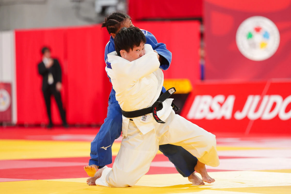 女子48㎏級(J1)の決勝に駒を進めた半谷静香(トヨタループス)は、10月の杭州2022アジアパラの決勝でも対戦したハイートホン・フサンキジ(キルギス)を相手に粘りを見せたが、ゴールデンスコアの14秒に背負投げを返されて一本負けを喫した。半谷は2022年5月に右脚の前十字靭帯を痛めて手術。昨年5月の全日本で復帰してから国際大会は今回で3大会目となるが、パリランキングでは上位につけている。アジアパラに続いて銀メダルに終わった悔しさを糧に、パラリンピックに向けてさらなる強化に励むつもりだ。
