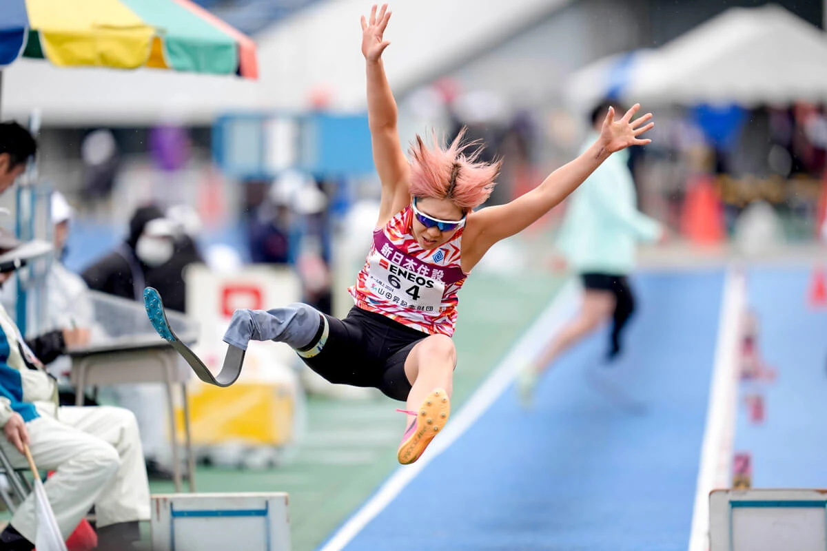 右大腿義足(T63)の近藤元はメイン種目の走り幅跳びで5m85を跳び、「シーズン初戦でこの気温で、これくらい跳べれば、まずまず」と安堵の表情。実は3月上旬の練習中に健足の左脚アキレス腱などを痛め、一時は歩けない期間もあったが、ようやく全力で走れるほど回復したという。冬季はフィジカル強化に励み、「エンジンを大きくして基礎動作を固めてきた。暖かくなればもっと調子は上がると思う。脚の様子も見ながら、スピードも磨いていきたい。今年は(神戸)世界選手権と(パリ)パラリンピックがあるので、そこで爆発させたい」と目標を思い描いた。