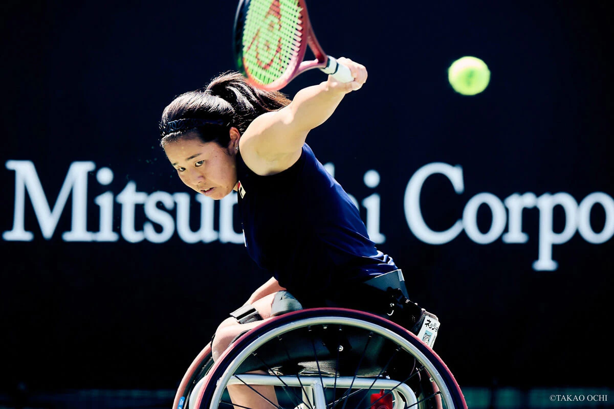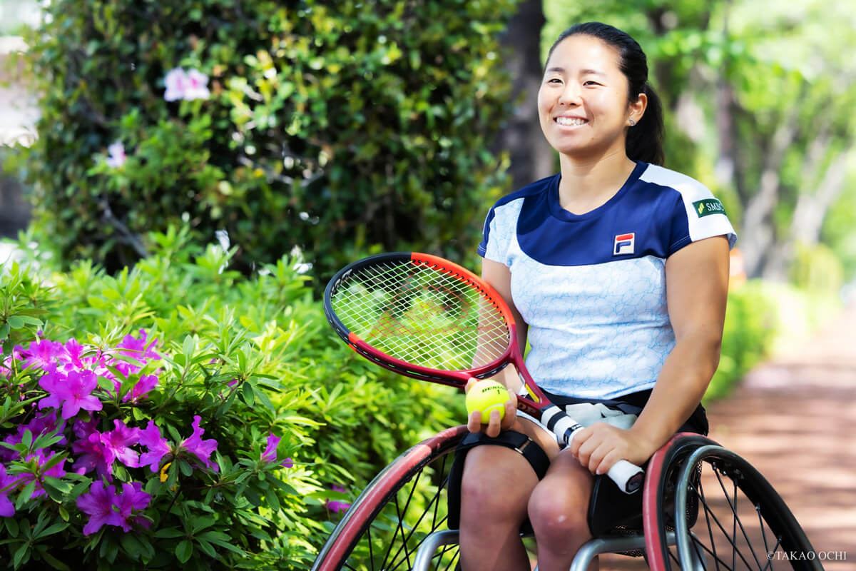 小麦色に焼けた肌。上腕の張りのある筋肉が汗を弾く。巧みなチェアワークで勇敢にプレーするのは、上地結衣選手だ。リオパラで銅メダル、東京パラで銀メダルを獲得。現在の世界ランキングは2位、女子車いすテニス界のトッププレイヤーである。