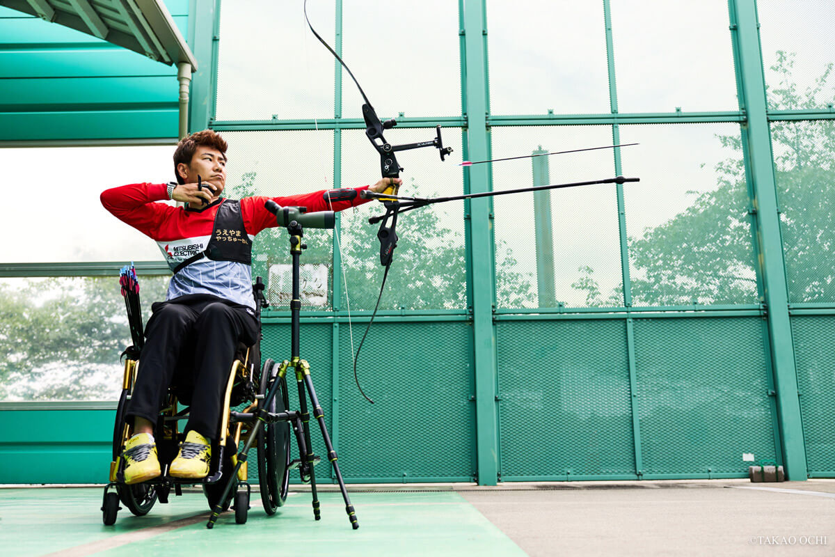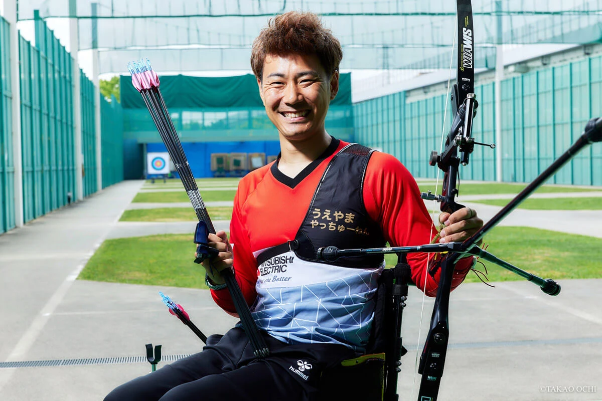 うえやま ともひろ●1987年8月28日生まれ、大阪府東大阪市出身。同志社大学からアーチェリー部に入部。大学卒業後、原因不明の両下肢機能障害を発症したが、アーチェリーは続けた。2016年のリオパラリンピックに初出場し、リカーブ個人部門で7位入賞。東京パラリンピックでは混合リカーブ団体で5位。2022年の世界選手権で初優勝を果たす。三菱電機に所属。