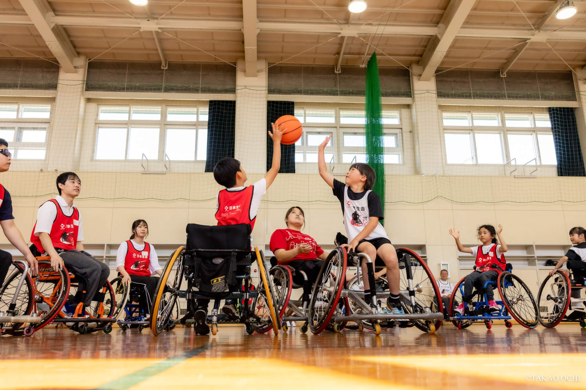「競技用車いすの操作を覚えれば、障がいの有無にかかわらず誰もが一緒にプレーできる。」こうした特長に価値を見出し、健常のバスケットボールと車いすバスケットボール両方をサポートし続けるのがメインパートナーの日本生命である。