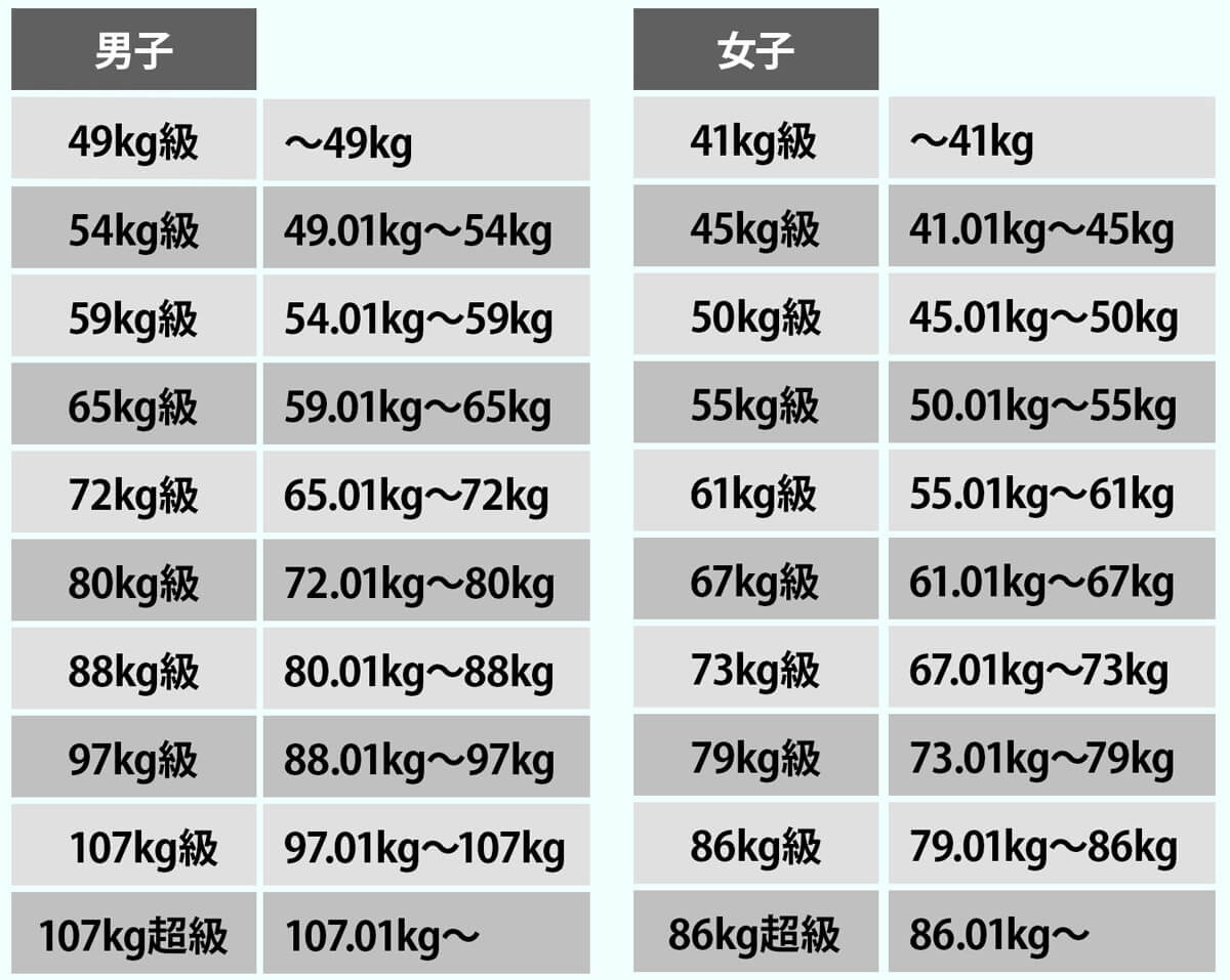 競技は男女別に行い、それぞれ体重別に10階級に分かれ、階級ごとに順位を競う。一般のベンチプレスのルールに準じて競技が行われ、障害の程度によるクラス分けはない。