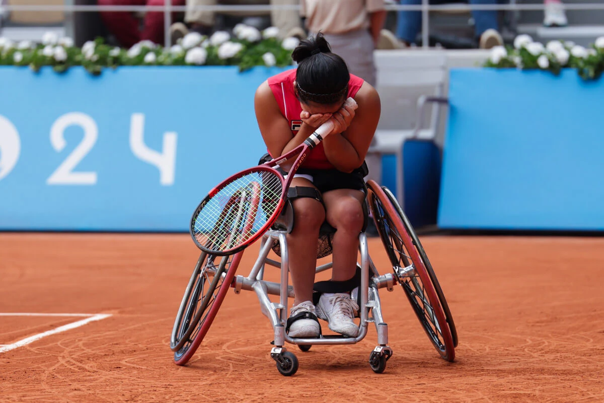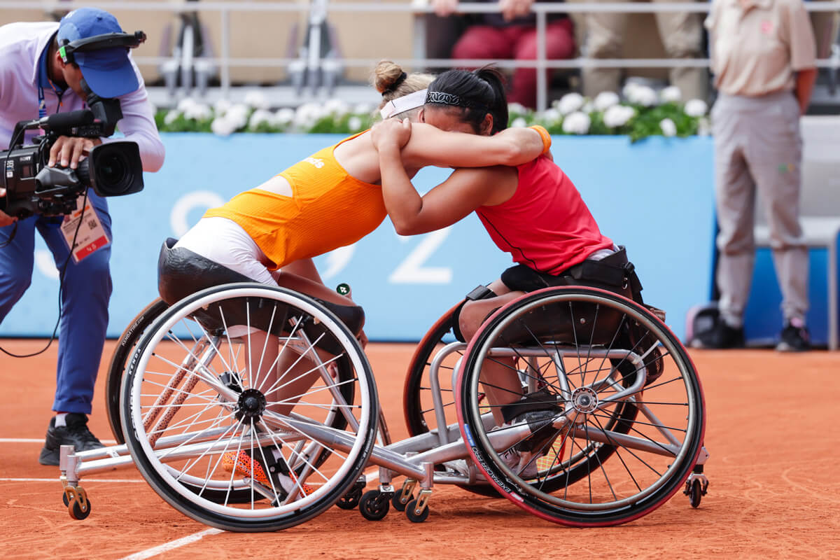 パリ2024パラリンピックの車いすテニス女子シングルス決勝。世界ランキング2位で第2シードの上地結衣(三井住友銀行)が世界ランキング1位で、東京2020パラリンピック決勝で上地を破ったディーデ・デ フロート(オランダ)を4-6、6-3、6-4で下し、見事リベンジを果たした。