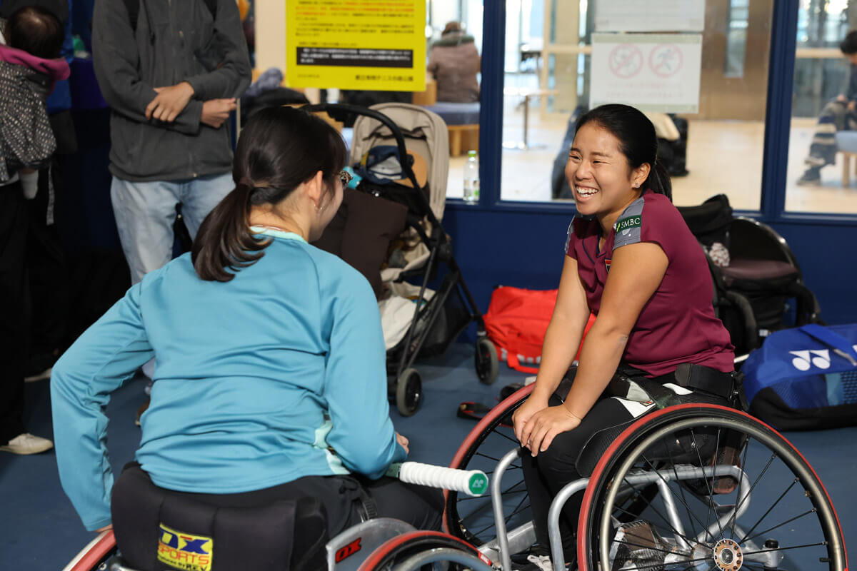 当日は同じ会場の別コートで日本車いすテニス協会のネクスト・次世代育成選手の強化合宿が行われていた。その次世代育成選手には、かつてクリニックに参加した岩本希心選手や松岡星空選手らも名を連ねている。松岡選手は1月にフランスで開かれた世界ジュニアマスターズで優勝するなど、成長中だ。松岡選手は合宿の合間に取材に応じ、クリニックについて「初めてプロ選手と打ち合えたことがすごく嬉しかったことを覚えています。第2回はプロの選手から『上手くなったね』と声をかけてもらって。スイッチが入る貴重な経験でした」と、振り返った。