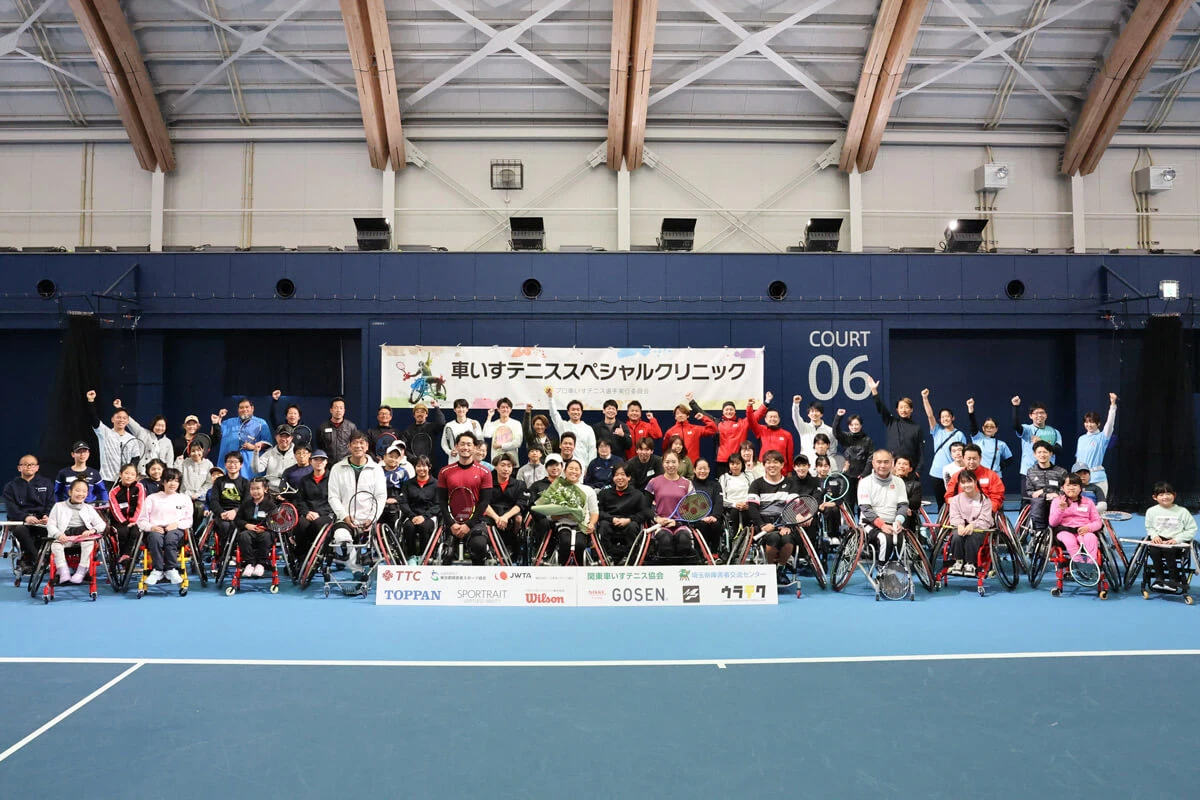 「第3回車いすテニススペシャルクリニック by プロ車いすテニス選手実行委員会」が2月8日、有明テニスの森公園インドアコートで開かれた。パラリンピアンなど第一線で活躍する車いすテニスのプロ選手らが主体となり、参加者との直接交流を通してテニスレッスンを実施した。第1回・第2回はジュニアを含めて次世代を担う若手選手の育成や強化が目的だったが、今回はより多くの人に車いすテニスを知ってもらおうと、テニス未経験者や健常者も応募可能とし、4歳から58歳までの41人が参加した。