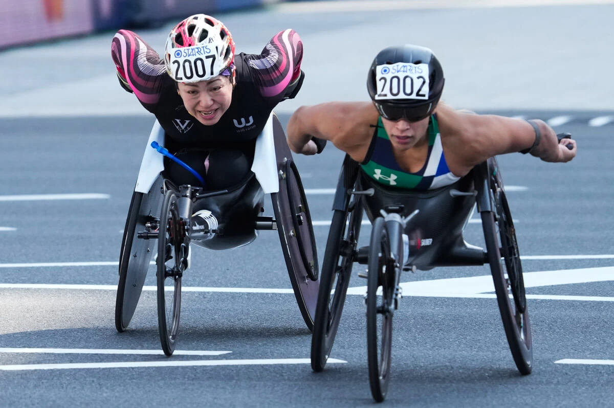 今年で18回目となった「東京マラソン2025」が3月2日に開催された。男女車いすマラソンの部も東京都庁前をスタートし、銀座や浅草などを回って東京駅前・行幸通りにフィニッシュする42.195㎞のコースで争われた。21選手が出走した男子はパリ2024パラリンピック銅メダリストの鈴木朋樹(トヨタ自動車)が大会連覇を飾った。マークした1時間19分14秒は従来の記録を1分43秒上回る大会新記録。2位に入ったパリ大会6位の羅興伝(中国)にも11分以上の大差をつける快走だった。