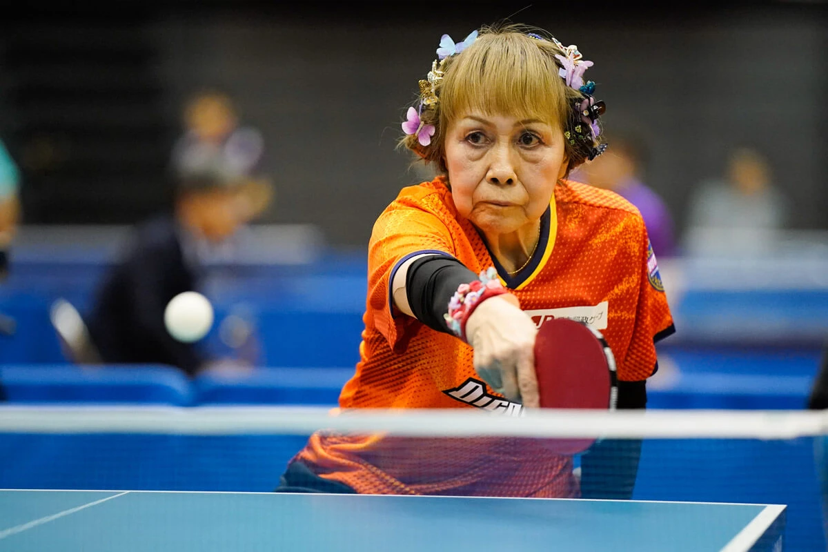 また、車いす女子決勝は77歳の別所キミヱ(ALL STAR/兵庫)が宮﨑恵菜(三保卓/静岡)をゲームカウント3-1で下し、大会11年連覇を達成。仲間や観客の声援に笑顔で応えた。男子同様に若い選手が増え、同時に競技レベルが向上するなかで成し遂げた、通算15度目の優勝。別所は「ロビングを信じて、コースを狙って、間を取る。この自分の課題に対して慌てずに取り組めたことが勝因かな。今年は今まで以上の喜びを感じている」と、優勝を噛みしめた。