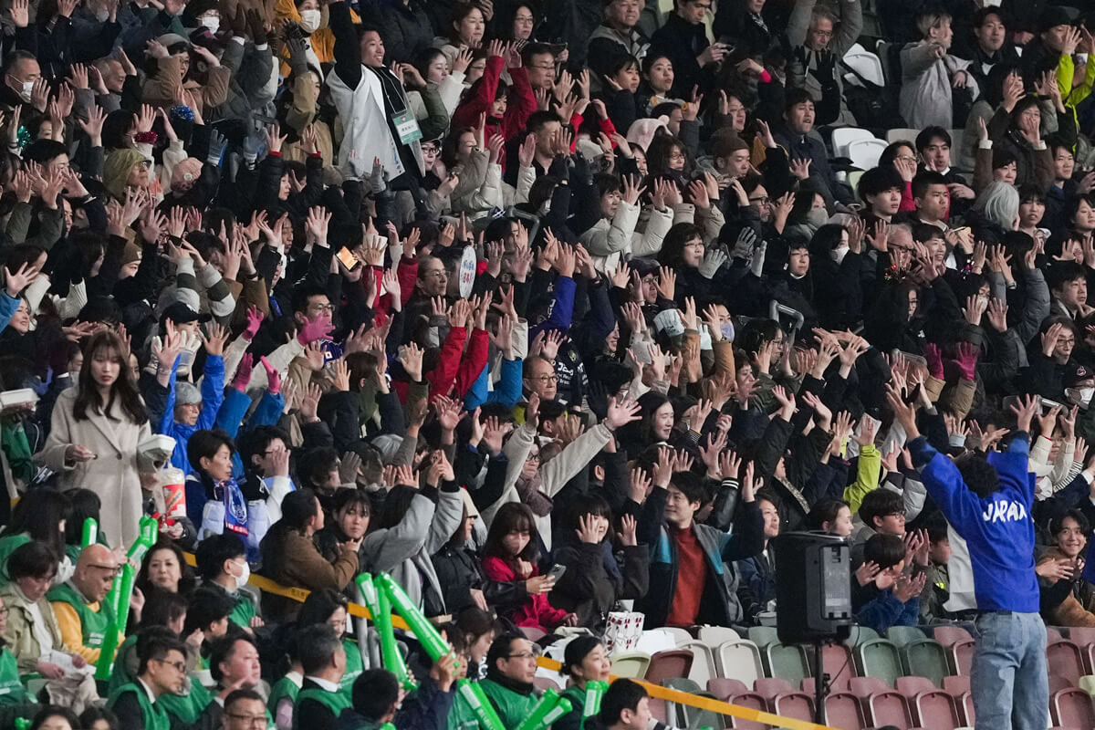 この日の観客席ではデフリンピック盛り上げの一環として、耳の聞こえない・聞こえにくい選手に向けた「サインエール」という新たな応援方法も試行された。これはデフアスリートらが考案した手話をベースにしたオリジナルのジェスチャーによる“目で見える応援”だ。観客席の一角でリーダーの掛け声の下、観客数百人がサインエールに挑戦。統一感あるジェスチャーで選手にエールを送った。松元主将は、「(声援は)聞こえないが、たくさんの人が一緒に手話や動作をしてくれれば見える。熱気も伝わってきたし、すごいパワーになった」と感謝した。