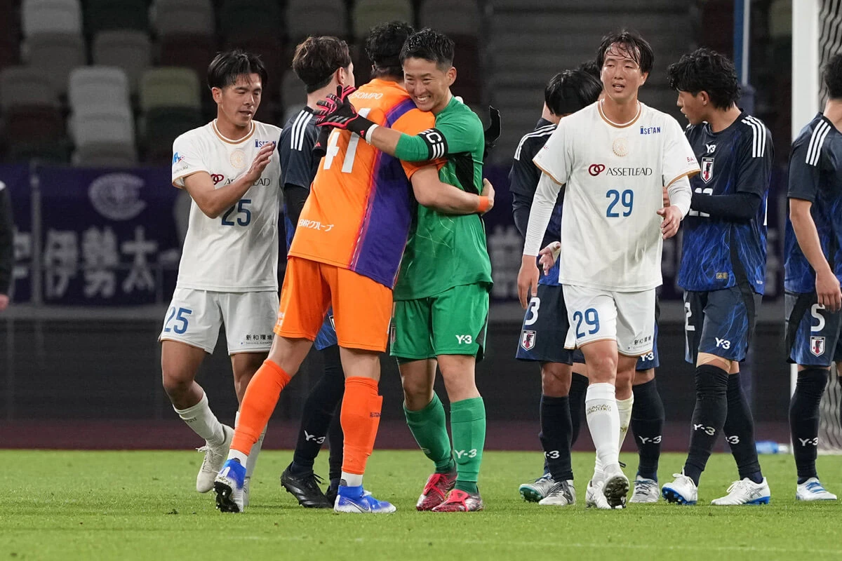 聴覚に障害がある選手たちがプレーするデフサッカーの男子日本代表が4月2日、国立競技場を舞台に、日本フットボールリーグ(JFL)で今季首位を走る(4月2日時点)強豪、クリアソン新宿とエキシビションマッチを行った。この試合は11月に日本で初開催される聴覚障害のあるアスリートの国際総合競技大会、「東京2025デフリンピック」に向けた大会機運の醸成やデフ代表の強化を目的に開催された。日本のデフサッカー史上、“聖地”での試合は初めてという画期的なマッチで、約3,800人が応援に駆けつけた。デフ代表は善戦するも0-2で敗れたが、初の金メダル獲得を目指すデフリンピックに向け、強豪との実戦や大観衆での試合など貴重な経験を積む機会となった。