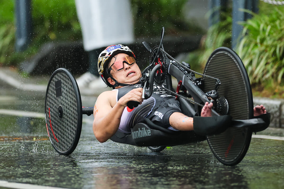 「ワールドトライアスロンパラシリーズ(2025/横浜)」が5月17日、横浜市の山下公園をスタート・フィニッシュとする特設会場で行われた(スイム0.75km、バイク20㎞、ラン5㎞)。昨年のパリ2024パラリンピック(以下、パリ2024大会)のメダリストも参戦し、雨が降り続くなか白熱したレースが繰り広げられた。日本勢は男子9人、女子3人がエントリーし、女子PTS2(運動機能障害)の秦由加子(キヤノンマーケティングジャパン・マーズフラッグ・ブリヂストン)が2位に入った。