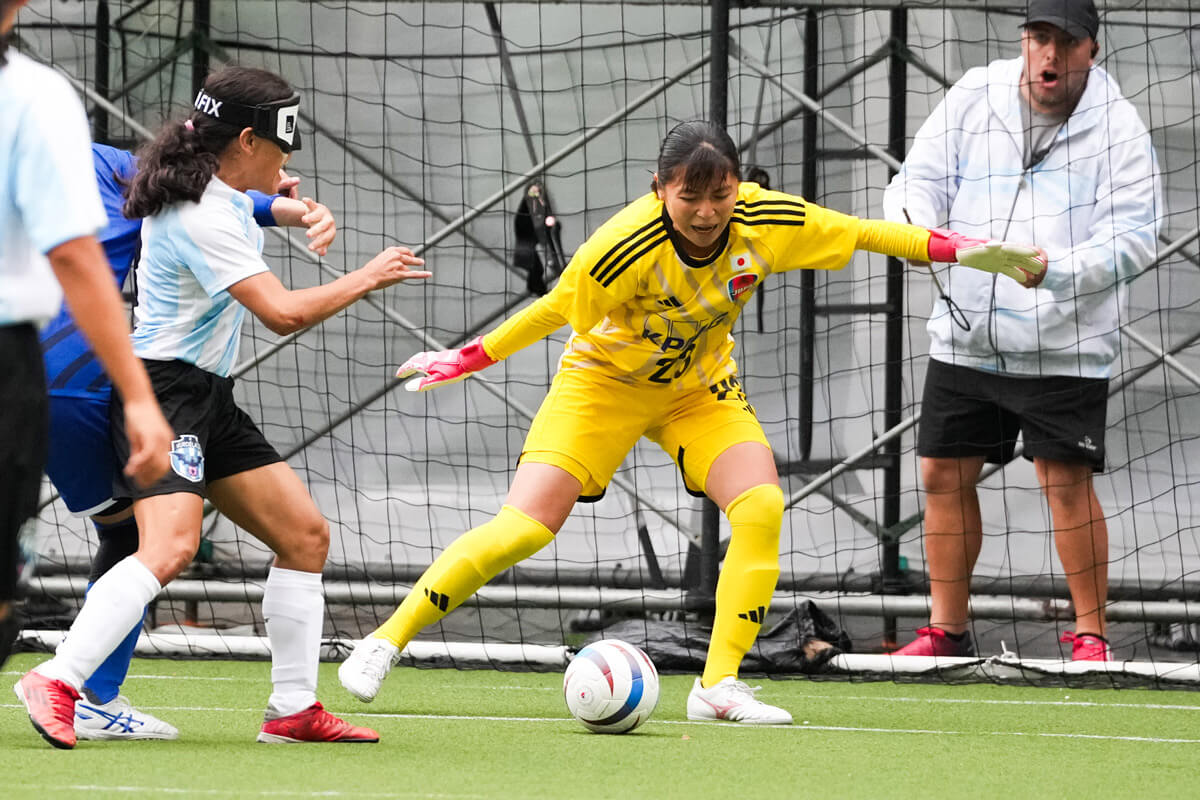 今大会、日本チームは“ギリギリの布陣”で臨んでいた。実は、大会ごとに直前に行われ、各選手の障害の内容や程度を判定する「クラス分け」で、チームのエース、菊島宙と守備の要、鈴木里佳の2名の視覚障害が、「参加規程範囲に該当せず」と判定され、出場できなくなった(*)。さらに、成長著しい田中一華も体調不良で出場を辞退。結果、フィールドプレーヤーは4名のみで「交代ができない」状況となり、2名のGKを加えた6人での戦いを強いられた。だが、猛暑も雨天もあった5試合を戦い抜いて頂点に立ち、チームとして貴重な経験と自信もつかんだのだ。