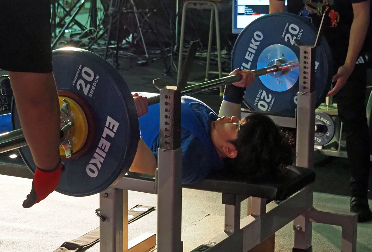 2人の10代選手も自己ベストをマークし、成長を示した。一人は男子49㎏級の高校2年生、飯沼世成で75㎏、80㎏、82㎏を全てパーフェクトでクリア。自己記録を11㎏更新するとともに、ルーキーカテゴリーの日本新記録も樹立した。「観客の中で競技できて楽しかった。次も記録更新できるように頑張りたい」と笑顔を見せた。パワーリフティングには車いすバスケットボールのトレーニングで出合ったが、競技としての面白さを感じ、今は相乗効果を感じながら二刀流に挑んでいる。