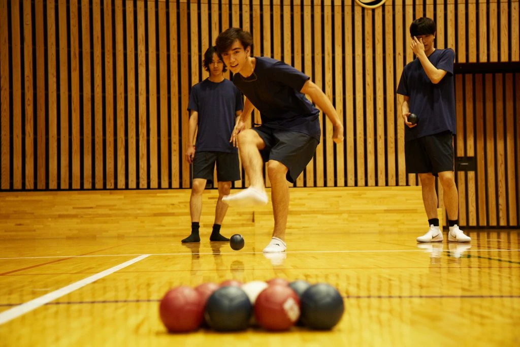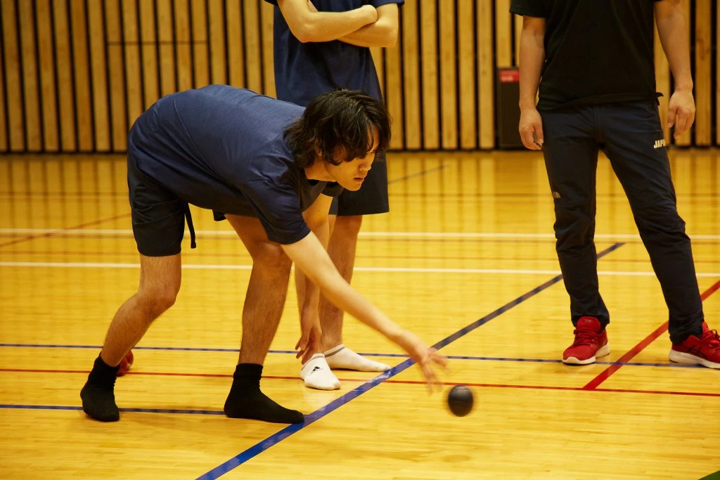 実は手で投げるのが決まりではなく、ルール上、足で蹴ってもOK。サッカー経験者であればインサイドキックなどで目標球を狙うというのも一つの手なのだ。