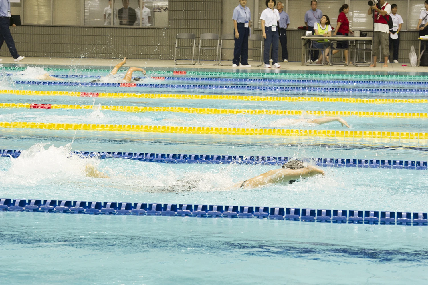 注目選手である池愛里選手の笑顔が印象的でした。緊張する場面でも楽しんでいる前向きさに励まされました。どのクラスの選手たちも力いっぱいラストひとかきまで丁寧に泳ぎきる姿が印象的でした。