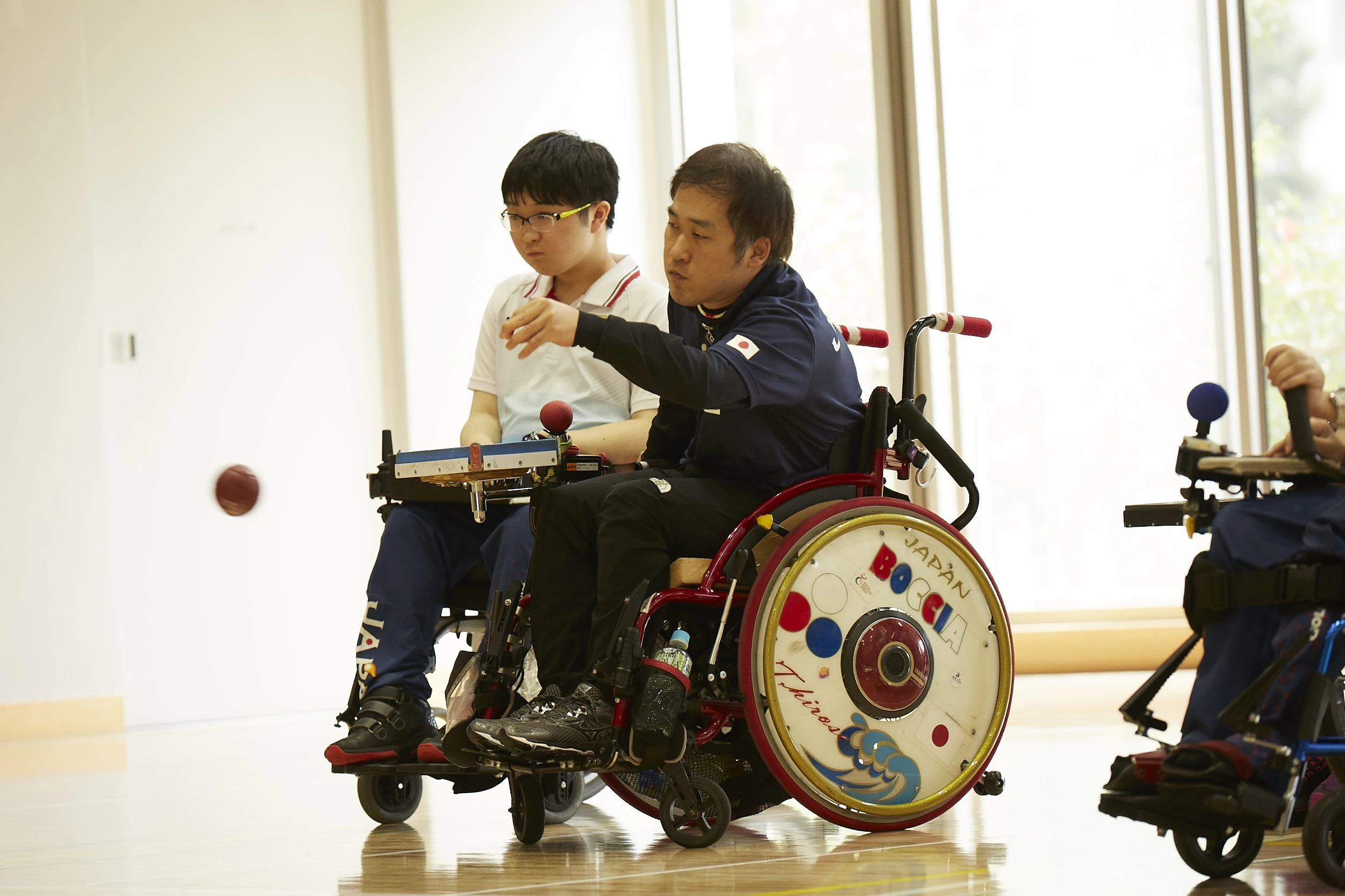 脳性まひなどの重い障がいのある人のためにヨーロッパで考案されたパラスポーツで、赤と青のボールを6球ずつ投げて白い的球(まとだま)にどれだけ近づけられるかを競う。障がいの度合いによってBC1からBC4まで4つのカテゴリーに分けられており、自力で投球ができない選手たちのためのBC3ではアシスタントによるサポートのもとランプという勾配器具が使用される。現在、日本には車いすの使用有無を問わない独自の「オープンクラス」があり、障がいのない人でも大会に出場できることで人気を高めている。