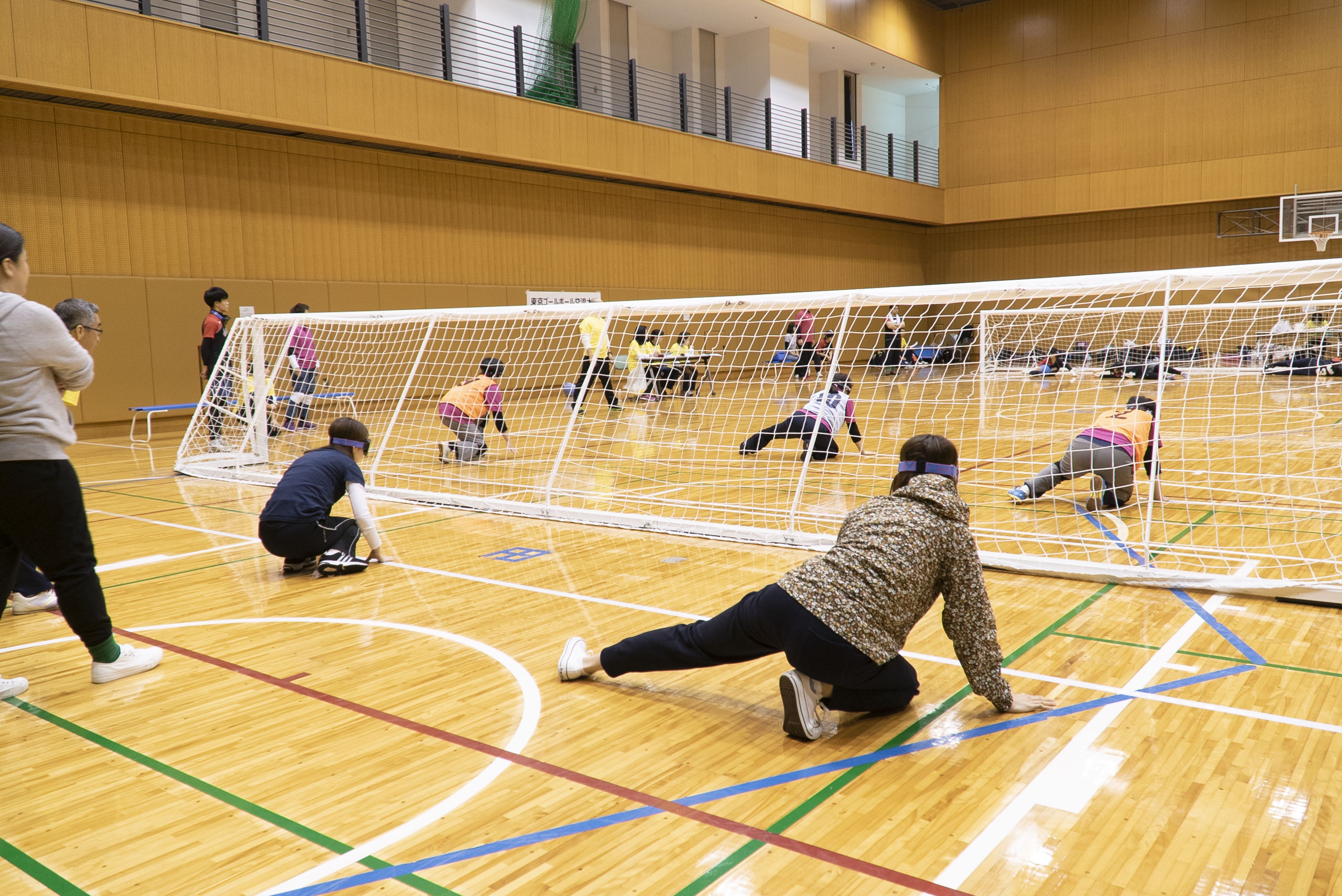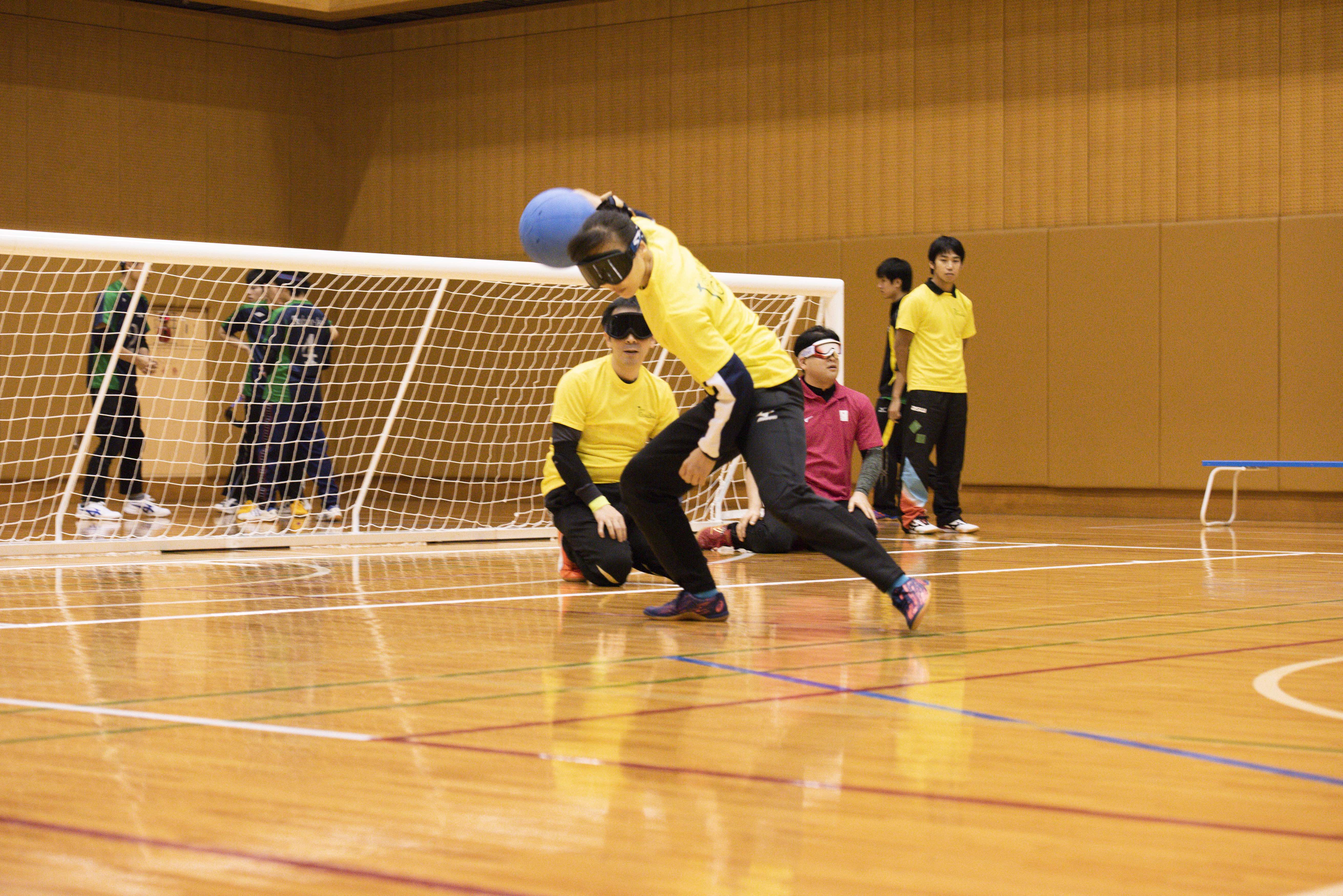 ゴールボールは、もともと第二次世界大戦で視覚に傷害を受けた傷痍軍人のリハビリテーション効果を促進するために考案された。アイシェード(目隠し)を着用した1チーム3名のプレーヤー同士が、コート内で鈴入りボールを転がすように投球しあって味方のゴールを防御。相手ゴールにボールを入れることにより得点し、一定時間内の得点の多少により勝敗を決するもの。プレー中は静かに応援し、点が入ったら声援を送る。選手はその声援により、点が入ったことがわかる。 (「日本ゴールボール協会」公式サイトより)