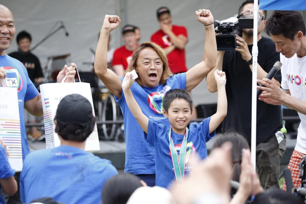 開会式で「きょうの目標はただひとつ、ノーバリアになること!」と松岡修造さんが呼びかけると、壇上で紹介されるゲストも「登ることは大好きなので一番を目指して!」(小林さん)、「勝つことを目標に!」(木村さん)と早くも戦闘モード。