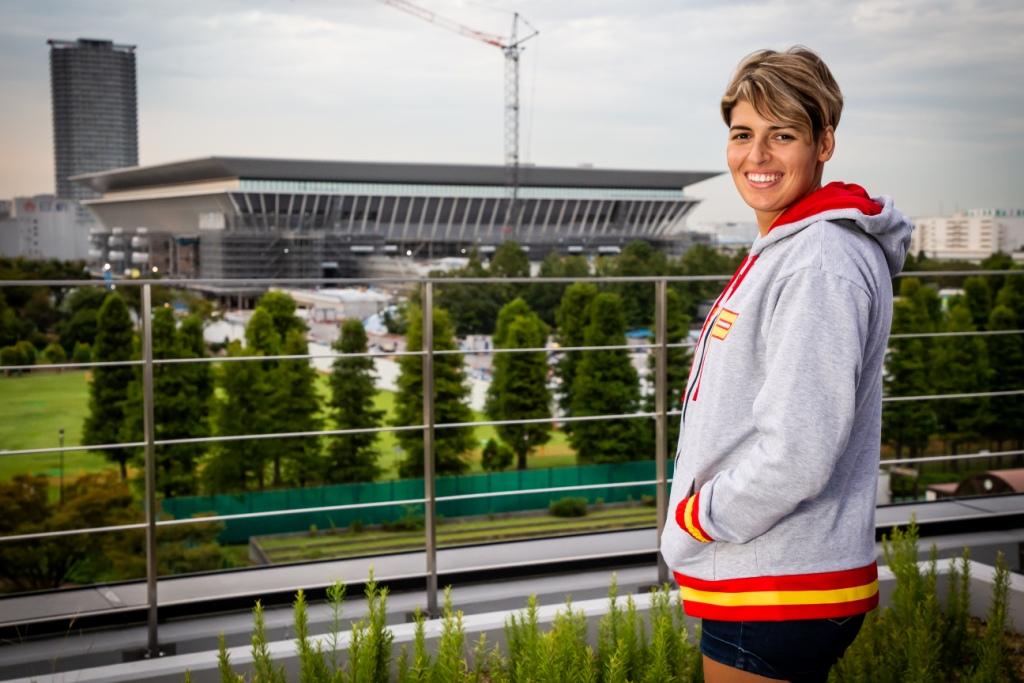 取材のあと、モラーレス選手はパラリンピックの競泳会場となる「東京アクアティクスセンター」が一望できる場所に移動した。まだ工事中で大きなクレーンがそびえたっていたが、ほぼでき上がった外観を見ることができ、興奮した様子で「とっても大きいのね!」と感嘆の声を上げていた。コーチやスタッフらと無邪気に記念写真を撮る彼女の笑顔は、陸の上ながら、たしかに「シレニータ!」と声をかけたくなるほど輝いていた。