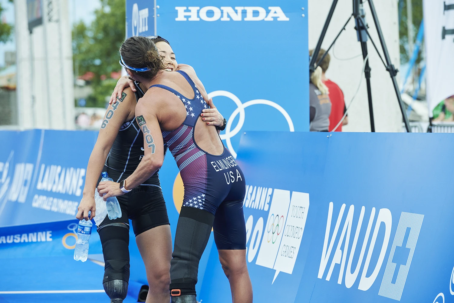 結果、ランは23分28秒とPTS4クラス2位の好タイムとなり、同クラス全体3位でゴールイン。ライバル選手とハグを交わし、笑顔がこぼれた。