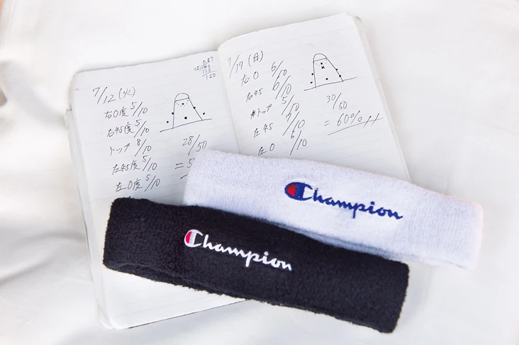 「高校のときに使い始めた練習のメモ用ノートです。コーチにもらったありがたい言葉とかも書いていたりします。自分用だから字はザツ(笑)」