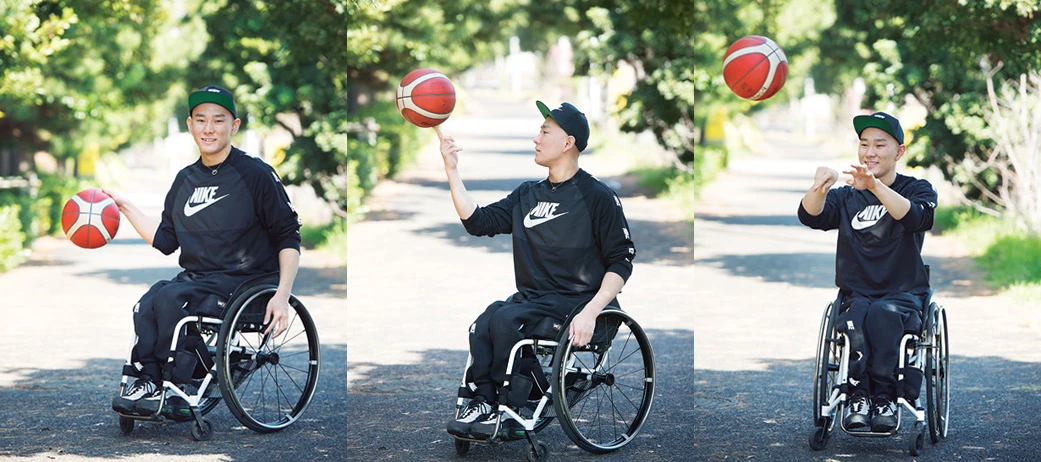 3つ上の兄が中学でバスケ部に入ったのが、バスケに興味をもったキッカケ。競技用車いすに乗ったり、本格的に始めたのは中1になって地元のチームに入ってからです。強豪チームだったので、まわりとのレベルはまったくちがって。5歳から車いす生活だったけれど、競技用のものを乗りこなすのには1年弱かかりました。それでもバスケを続けられたのは、チームの選手やコーチが「絶対うまくなる」って言ってくれていたから。その言葉を信じて"いつかこの人たちと対等にやれる日がくる"と思ってがんばっていました。ただ高校生になって同世代の選手が日本代表に選ばれていくなかで"自分だけがうまくなってないんじゃないか"と壁にぶつかったことも。そのときに今までのガムシャラな練習法じゃダメだと思い、ノートを取ることにしたんです。何本シュートが入ったとか、角度ごとのシュート決定率のちがいとか。その約半年後"U23世界選手権"の選手になれた。諦めずにがんばってよかったなと思います。