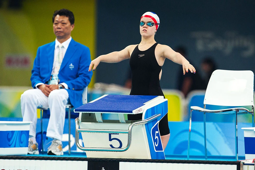 13歳で初出場した2008年の北京パラリンピック、100m自由形のスタート前。ネイルの英国カラーが印象的だった。