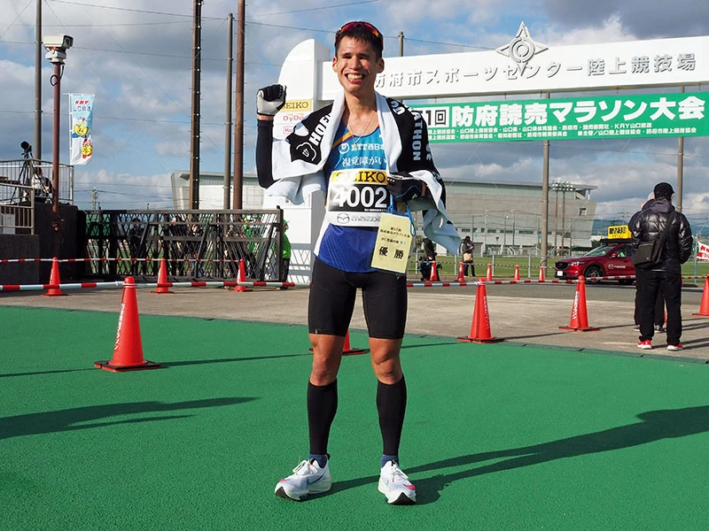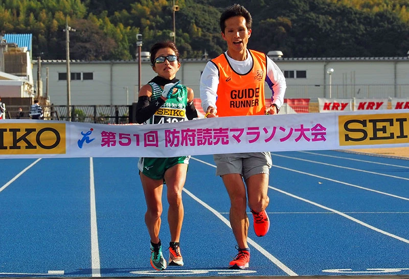 昨年12月20日に、山口県防府市で開かれた第51回防府読売マラソンでは同時に、「第21回日本視覚障がい者マラソン選手権大会」も行われた。日本ブラインドマラソン協会(JBMA)の強化指定選手10名(男子4、女子6)が出場し、うち6選手が自己記録更新を果たした。コロナ禍で多くの大会が中止や延期されるなか、例年より8割以上選手数を減らすなど感染対策を徹底しながら開かれた大会運営への感謝と、走れることの喜びを表現するかのように、ブラインドランナーたちは渾身の力走を見せた。