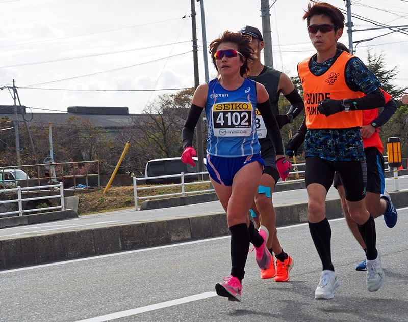 「タイム」と戦っていた道下、堀越の後方では、ライバル同士の激しい戦いも繰り広げられていた。今大会は東京パラ視覚障がい者マラソン代表の「推薦選手追加選考大会」も兼ねて行われていたからだ。昨年2月までに推薦選手選考会は終了し、男子2名、女子3名の推薦選手が決定していたが、東京パラの1年延期を受け、JBMAは不測の事態などに備えるため、新たに補欠選手などを決める追加選考会として今大会を指定したのだ。