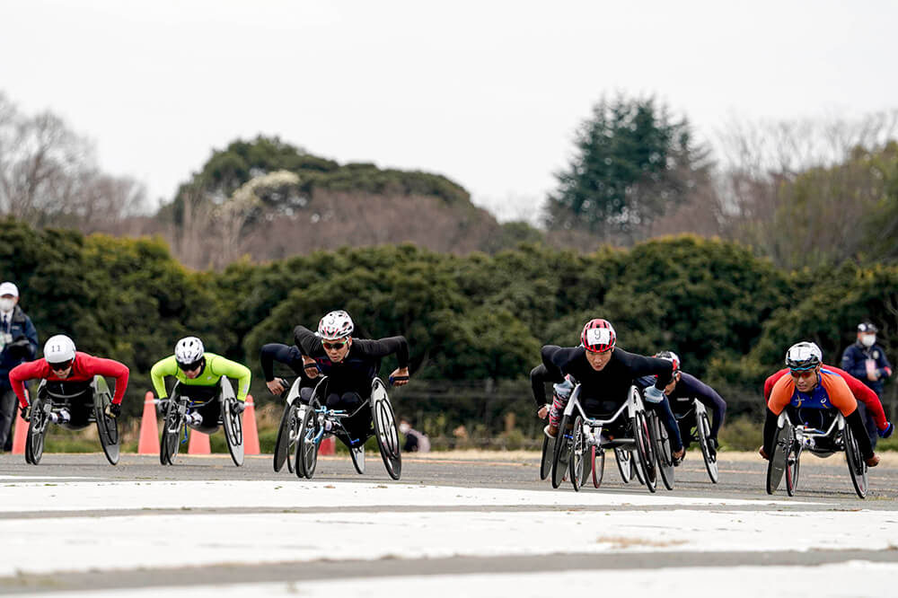 世界パラ陸上競技連盟(WPA)公認の車いすマラソン大会、「Challenge Tokyo Para 42.195km in 立川」が3月7日、東京・立川市の自衛隊立川駐屯地内を周回する特設コースで開催された。コロナ禍で国際大会の中止や延期が相次ぐなか、この大会はその名の通り、東京パラリンピック男女日本代表選考会の「ラストチャンス」として急遽企画された特別レースで、国内の有力選手、男子9名、女子2名が出場した。
