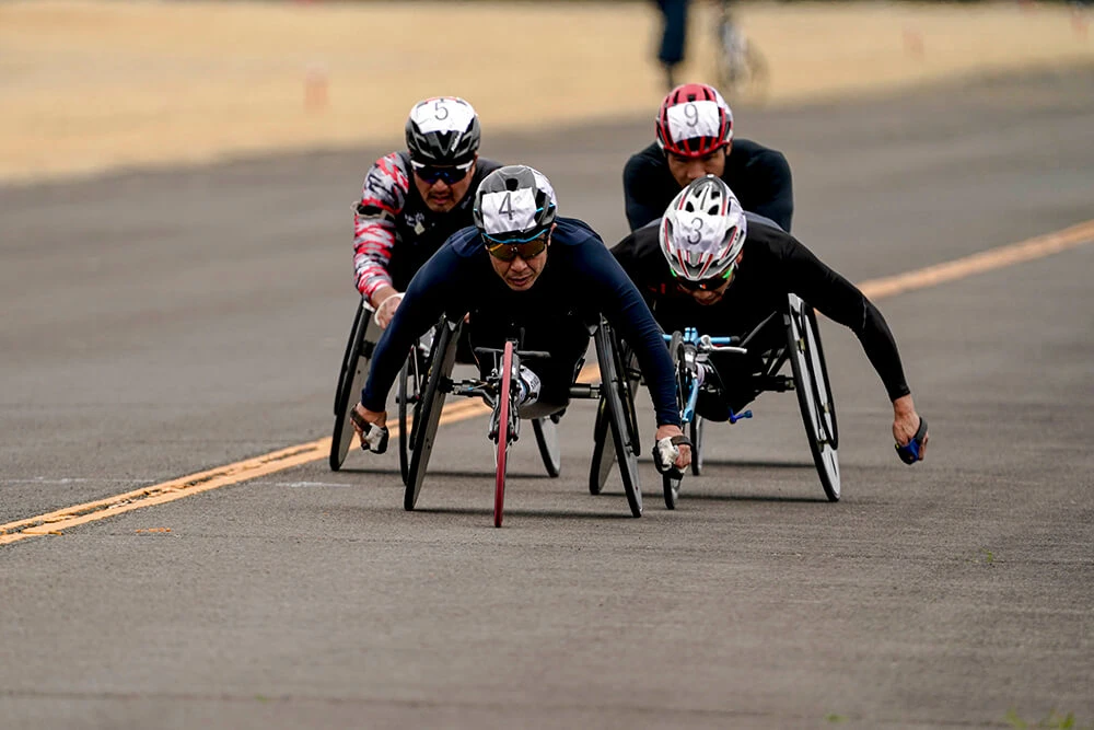 レース展開も序盤で思惑とは異なるものになった。平均時速20~30kmほどの高速となる車いすレースでは、風速2mでも向かっていれば、かなりの空気抵抗があり、疲労しやすい。この抵抗を軽減しようと、車いすレースでよく見られるのが、選手が縦一列に並び、風よけとなる先頭を適宜交代しながら走る、「ローテーション」と呼ばれる戦略だ。どういう順序で交代するかの駆け引きもあるが、集団が大きいほど交代要員も多くなり、ペースを維持しやすい。
