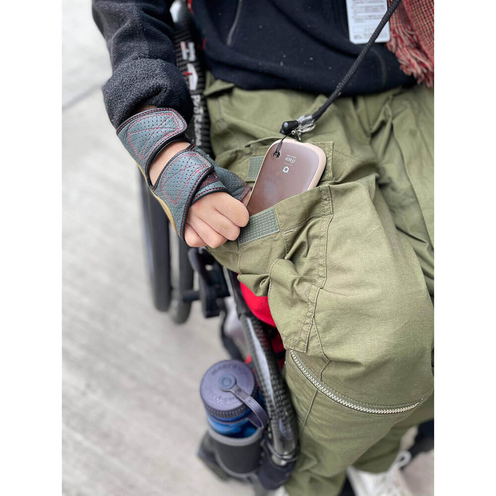 従来のピーチスマイルの特徴であるヒップ部分の一枚仕立ては踏襲して、ヒップにかかる圧を分散させて、床ずれを防止。前ファスナーも股まで開く。すべてのファスナーに指をかけやすようループを取り付けるなど、ディテールにもこだわった。チェアウォーカーからテレワーカーまで、おすすめの1本だ。