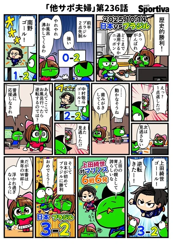 他サポ夫婦は日本代表対ブラジル戦を自宅で見ていたようです。日本代表が前半で2点リードされてしまい......。