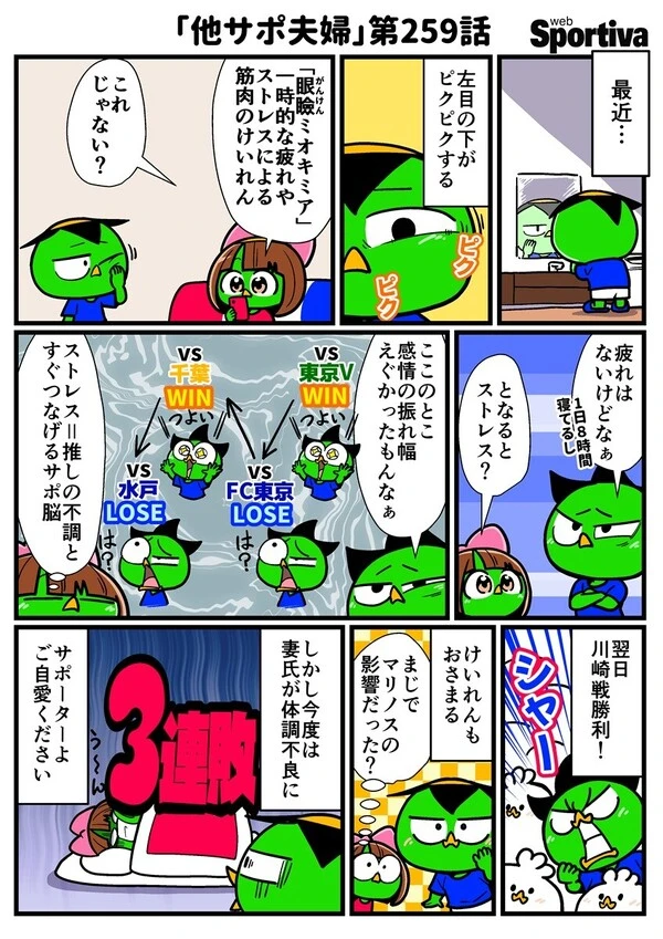 推しの不調が体に出てしまう他サポ夫婦。サポーターのみなさん、ご自愛ください。